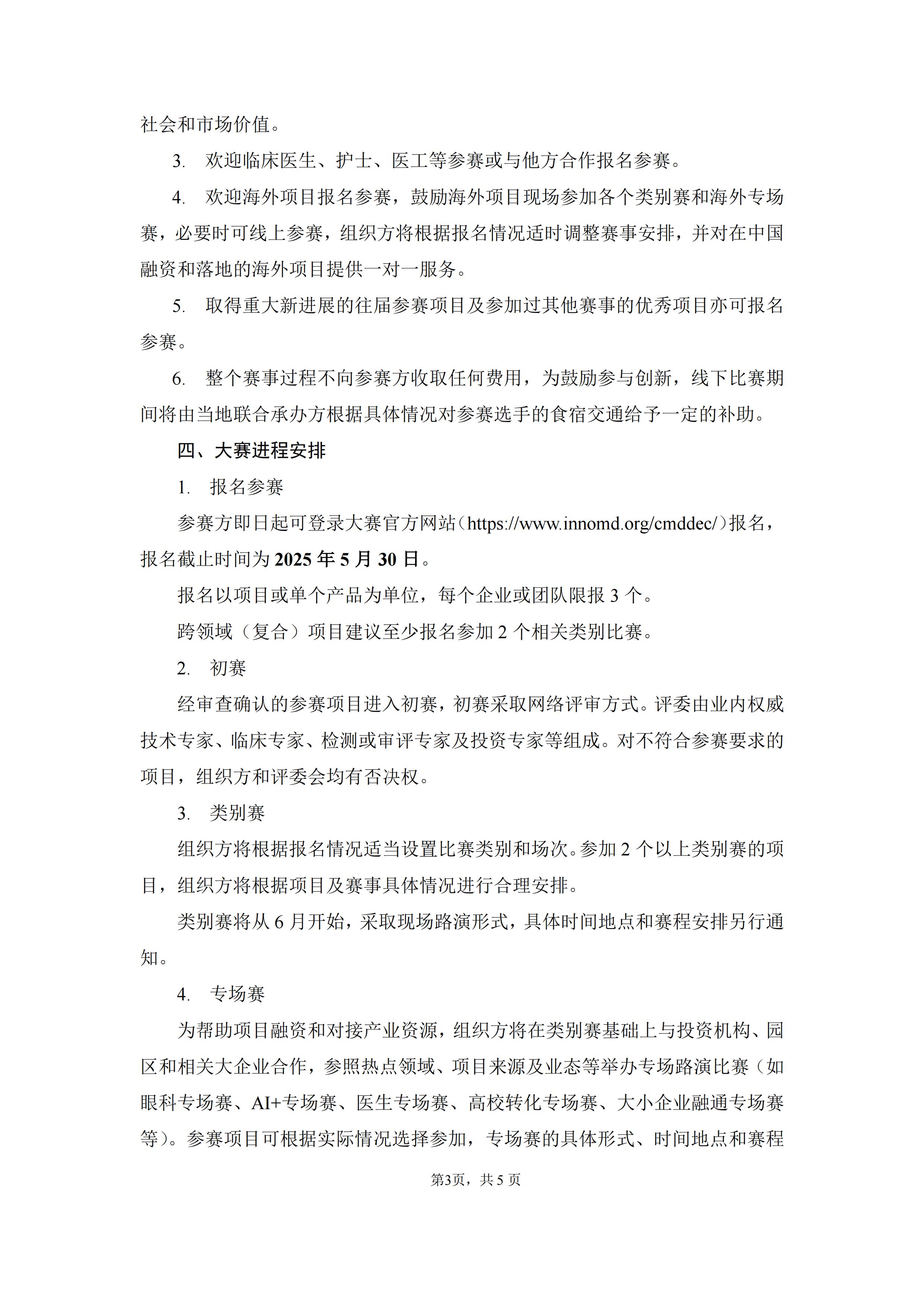 参赛方即日起可登录大赛官方网站(医疗器械创新网网://dihaofloor.com/cmddec/)报名,报名截止时间为2025年5月30日。